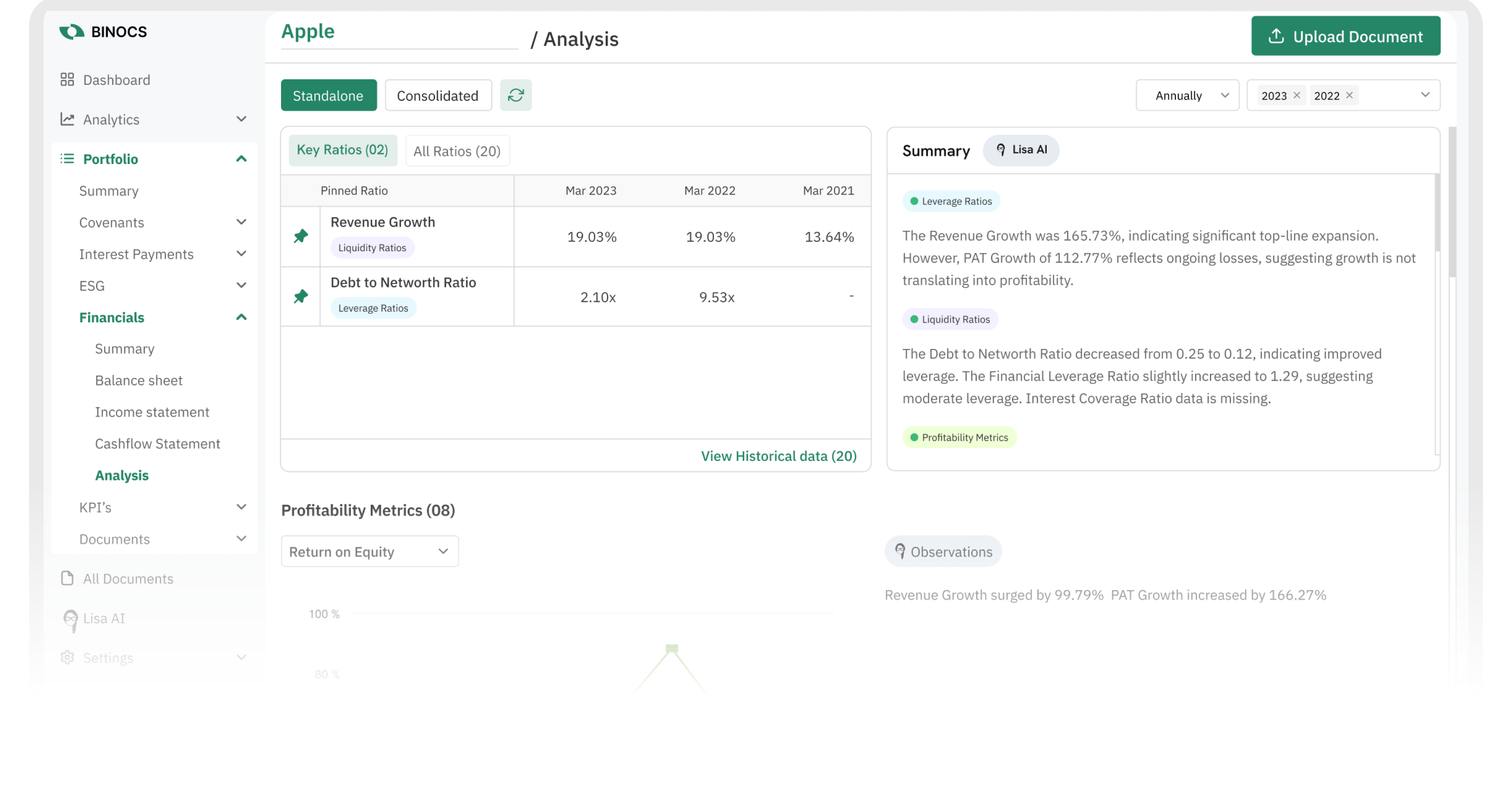 Conversational interface that answers queries, flags anomalies, suggests ratio insights and drafts concise narrative summaries - accelerating analysis.